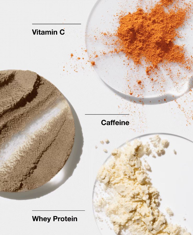 مواد اصلی این کرم شامل ویتامین C، کافئین و پروتئین آب پنیر است که با هم برای رفع خشکی و کمآبی پوست دور چشم کار میکنند.